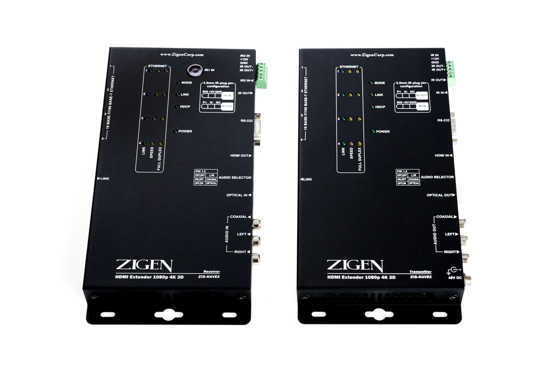 ZIG-HAVEX to zestaw rozszerzający transmisję wideo HDMI, osadzonego w nim audio, 4-portowego switcha POE Ethernet, analogowego lub cyfrowego kanału zwrotnego audio oraz dwukierunkowych sygnałów sterujących za pomocą pojedynczego kabla typu CAT-5/6.